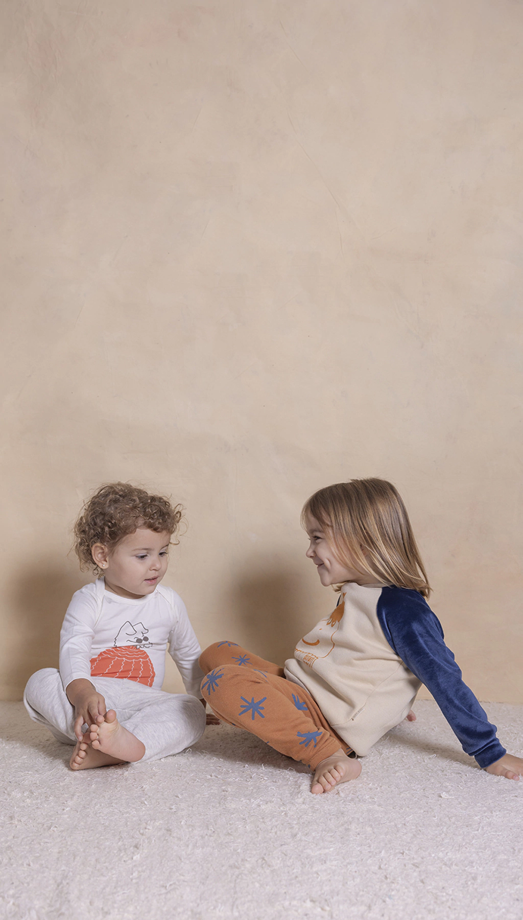 Estampa central: Serigrafía con tintas al agua, duradera y apta para los chicos. Es un proceso 100% manual, con nuestras estampas exclusivas de la nueva colección.